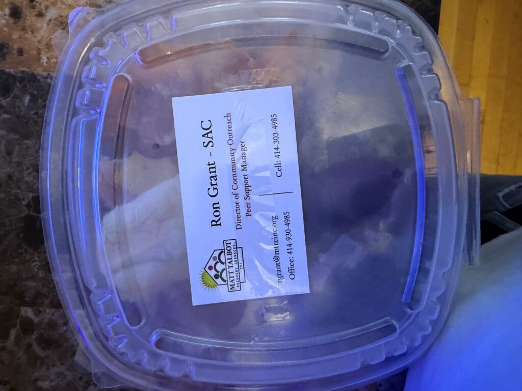 In October, we continued our outreach efforts. On October 8, we partnered with Africa Lacas to host a focus group called Untold Stories, giving space for voices from our community most affected by the opioid crisis in Milwaukee County. On October 24, our team joined other Milwaukee County vendors for an outreach event at Garden Homes Square on West Atkinson. We handed out company brochures, Narcan, fentanyl testing strips, and clothing items to community members. We also took part in the Harm Reduction Summit at the Coakley Building with the Milwaukee County Harm Reduction team.